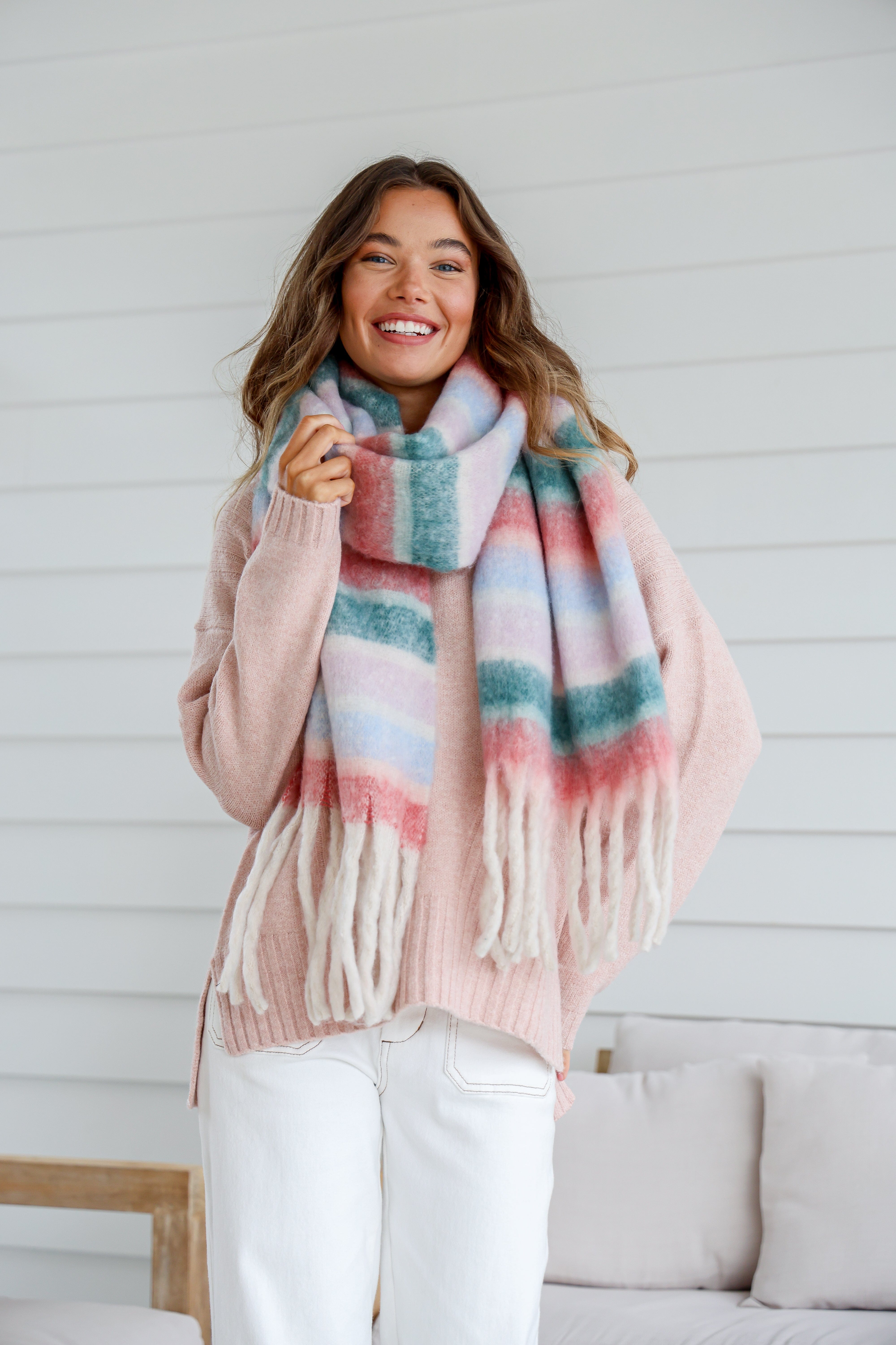 Indulge in luxurious warmth and style with our Rosa Fluffy Scarf - Striped, the essential accessory for the season
