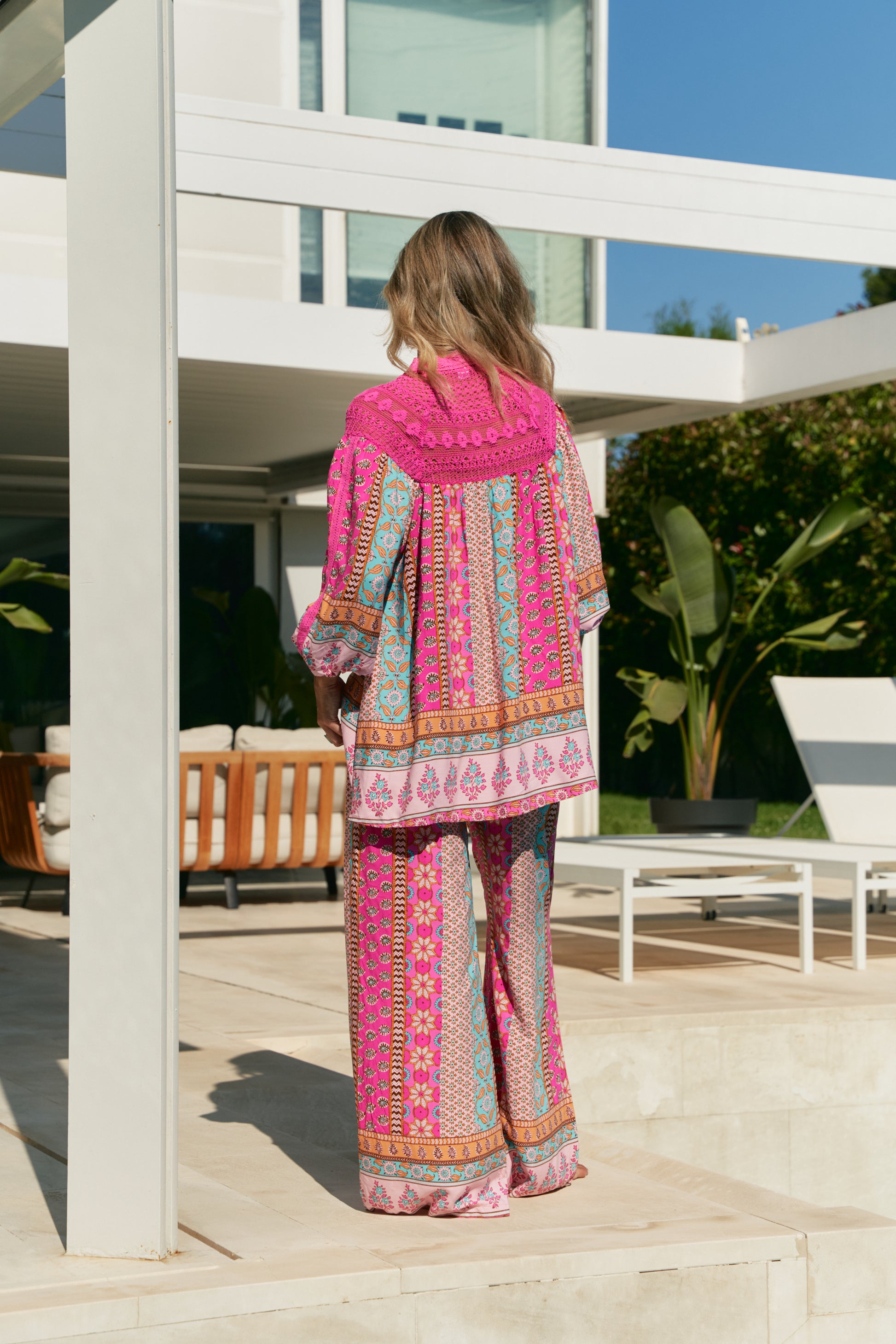 This blouse combines a relaxed, flowing fit with feminine details, making it one of the most versatile Jaase tops Australia has to offer. The lace highlights and exclusive print make it stand out as a must-have piece for any collection. Style it with denim, skirts, or shorts for a relaxed daytime look, or layer it up for evening outings.