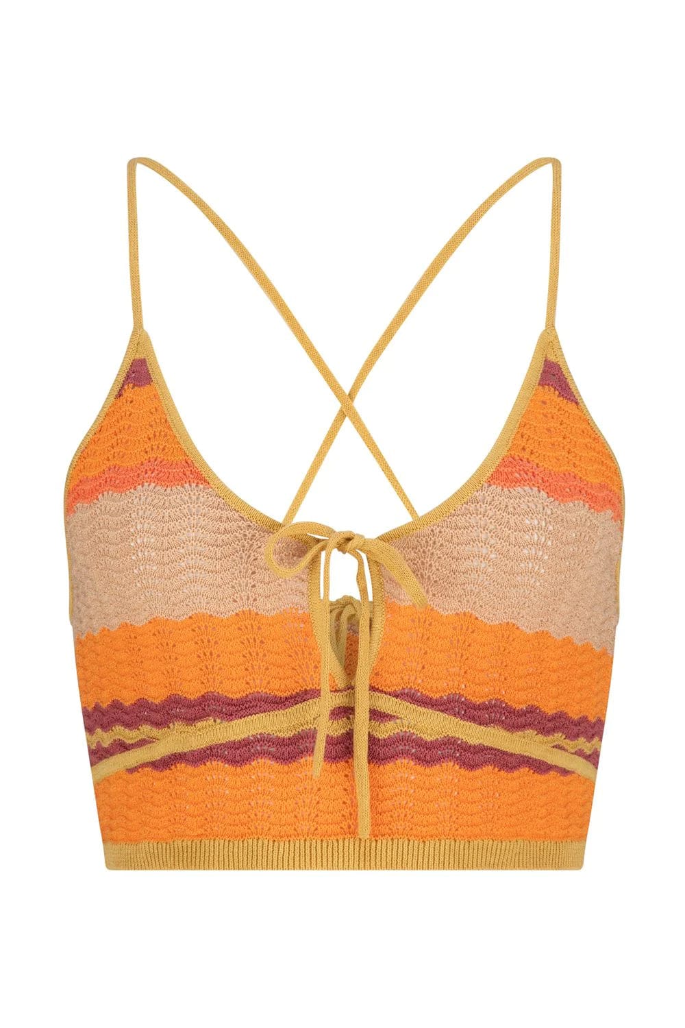 In summary, the Leilani Demi Crop Top in Sunset Stripe by Tigerlily is the embodiment of timeless elegance with a contemporary twist. Elevate your style with this crochet masterpiece, whether you're creating a coordinated two-piece set or making a fashion statement on its own. Order yours today and experience the perfect blend of sophistication and comfort with Tigerlily.